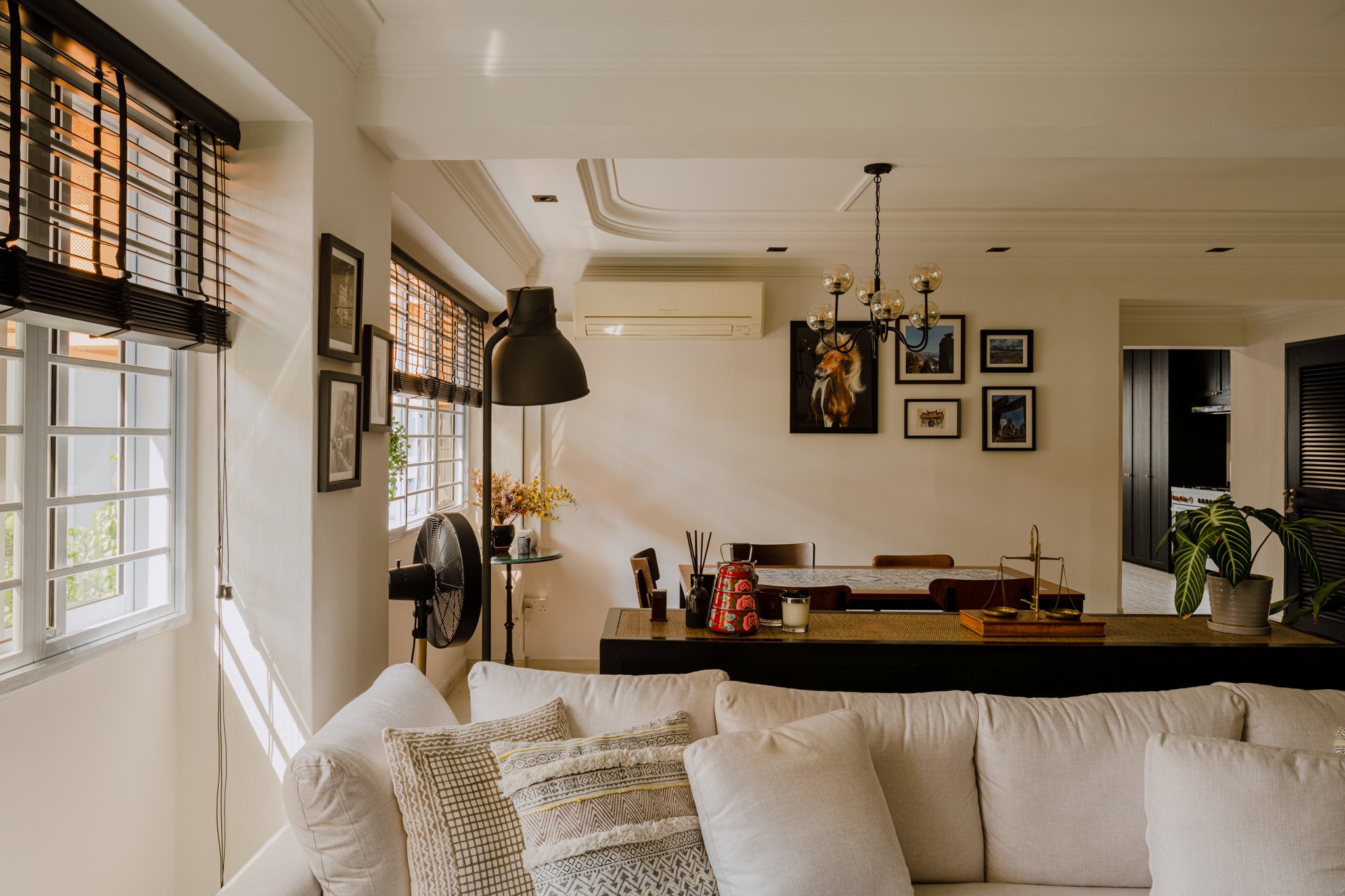 The fusion of the old and new began. We gave the walls a fresh coat of paint, in the classic shade of white. As you and I both know, white symbolises freshness and simplicity. A new beginning and a fresh start! Take a look at the statement furniture, the selection of wood-colored furniture brings out the contrast in our lovely white walls, giving you a pop of life upon entering the house.