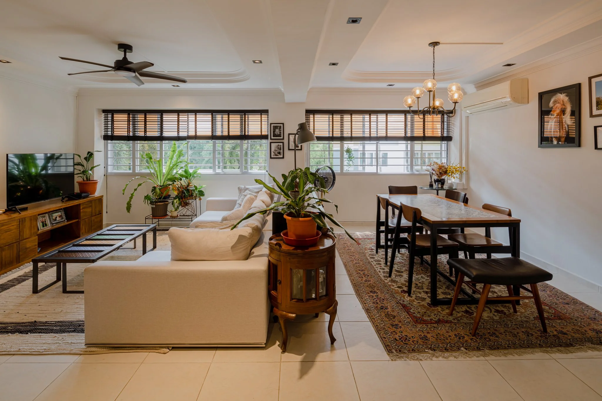 The Powder Room - a phrase that was once used in Colonial America represents our ‘toilet’ in Singapore. Black & white mosaic tiles were used for the floor. Focusing on smaller tiles than the usual large tile size gives you the completed look that is desired. Breaking away from your usual typical HDB toilet, the mirror is hung from the ceiling instead of mounting it on the wall. The empty space on the wall allows natural sunlight to shine in, greeting you every single time you need to relieve yourself. The tiny secret that I would like to give it away would be the use of plants, the addition of lots of greenery will add vibrance to your humble abode, your respite right in the heart of your home.