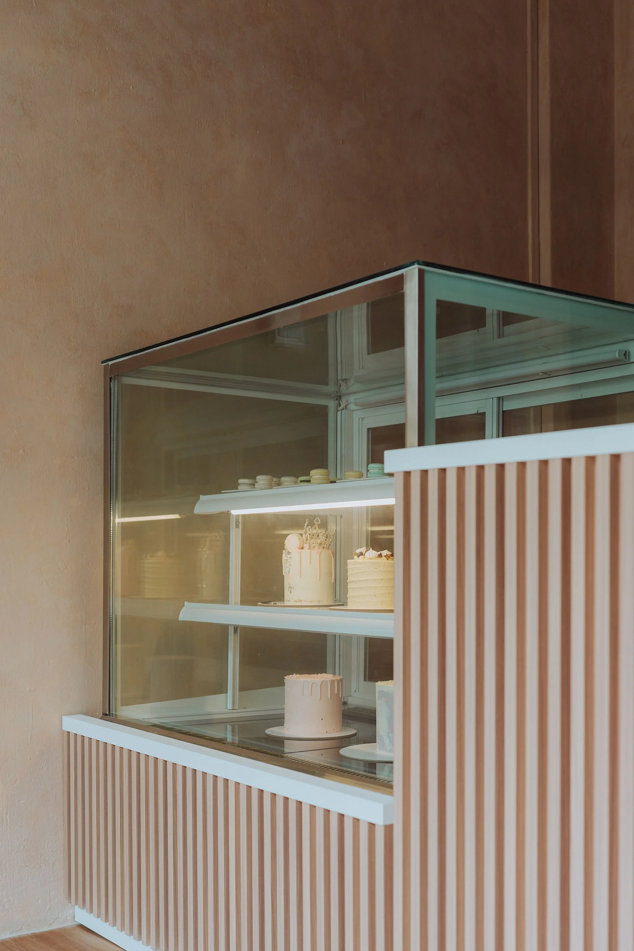 Nothing speaks louder than an aesthetically pleasing first impression - that’s when the shopfront comes into play. The star of this project, comes with a display of cakes in the chiller and countertop. You will also find curved counters with fluted panels, this is the perfect place where you’ll find most of the customers’ snapping an IG story or reels as they call it now.