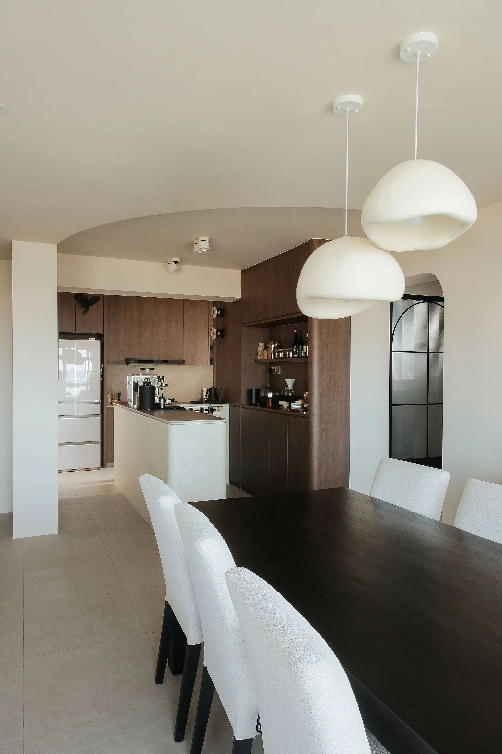 As the home owners love to make coffee and drink alcohol, the dry pantry makes the perfect area to do so. Different types of lighting are used here as this is the key feature of the home. One of the feature would be the curved false ceiling with led lights and this helped to highlight the space