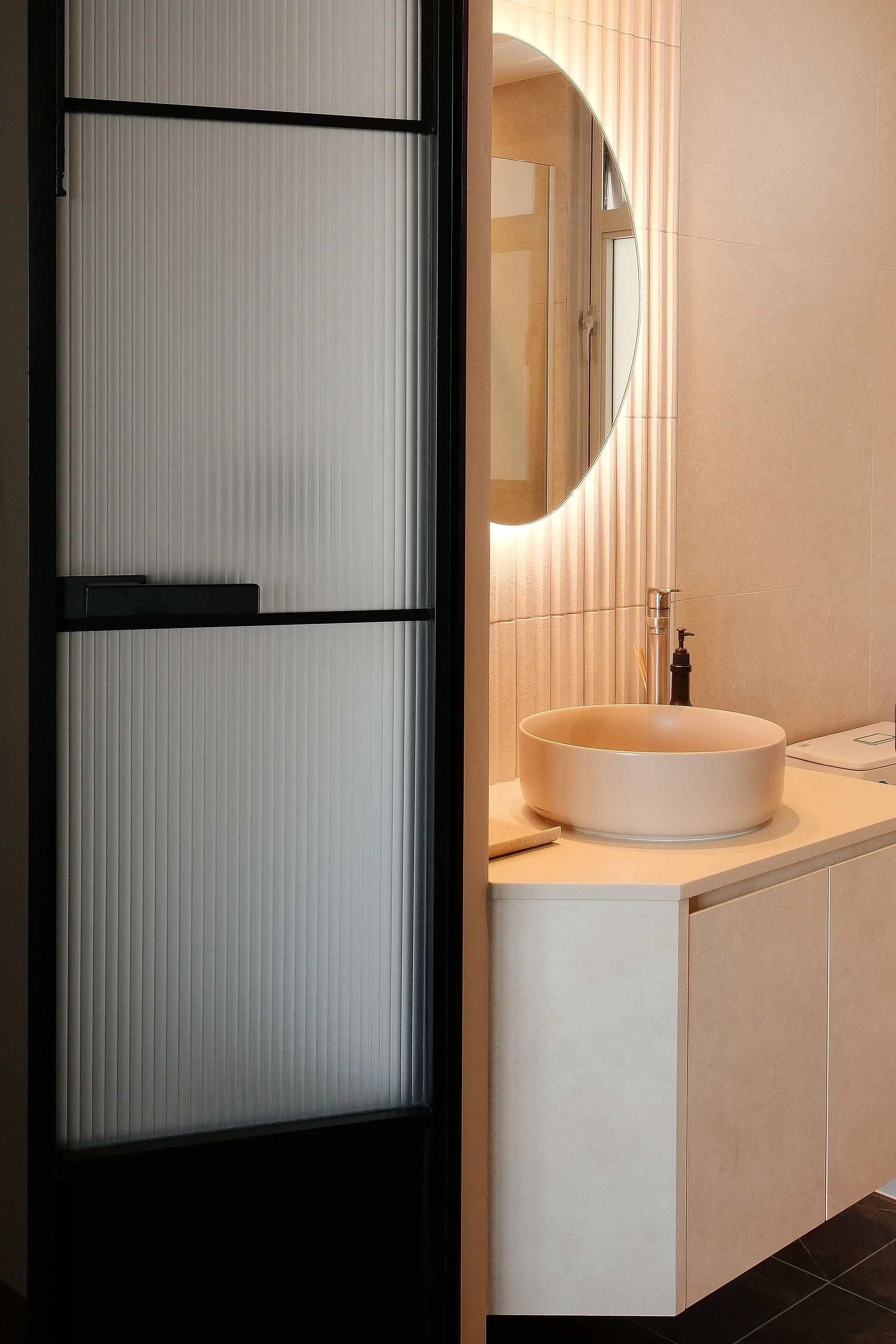 Fluted glass was used for the master bathroom door and this adds on texture to the master bedroom but also complementing the wardrobe.