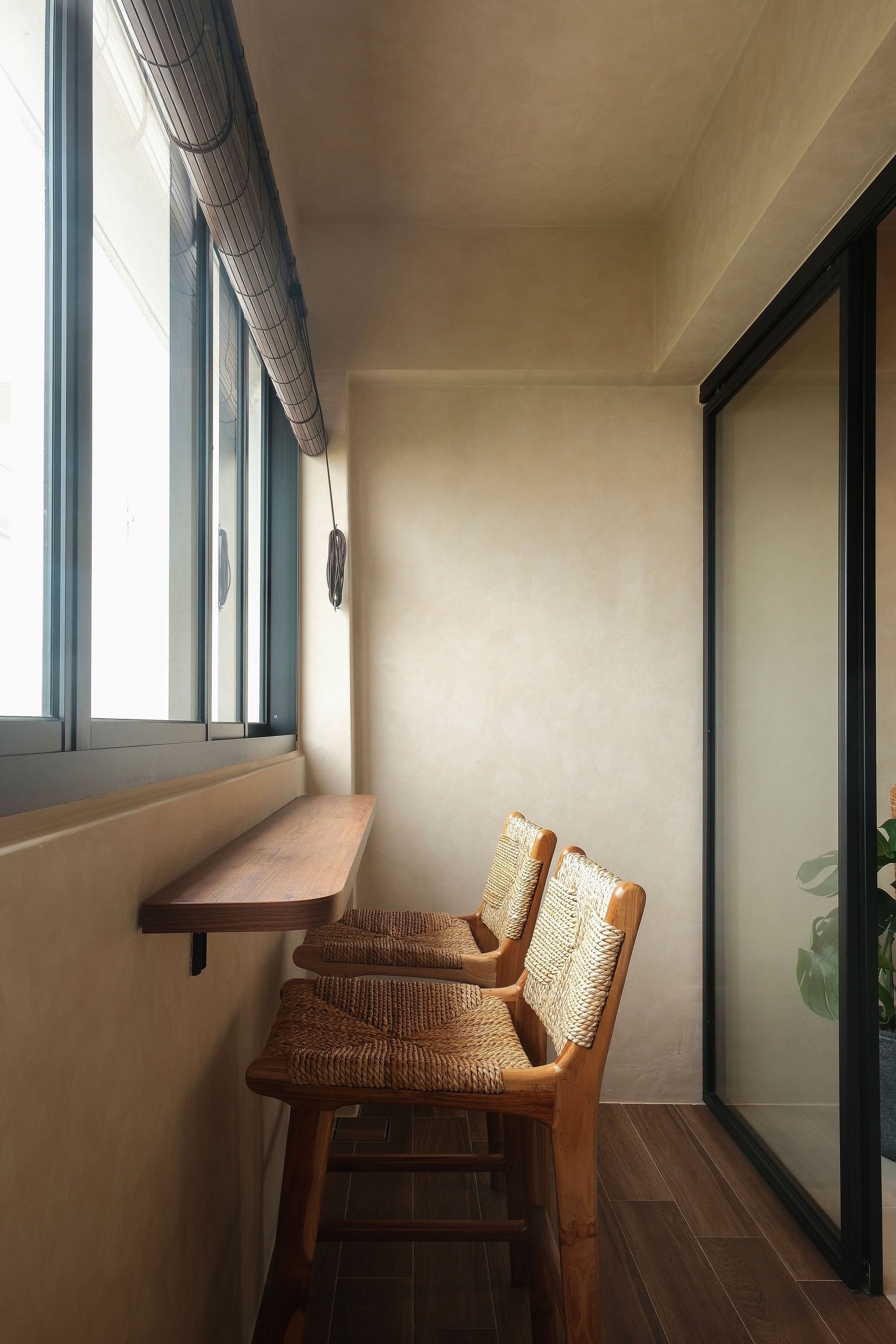 The team brought the same cosy minimalist style into the balcony with a unique tiered planter design. Clad in curved layers of cushions and platform steps, the planter adds to the oasis-like atmosphere. Continuing the laidback design language is the folding table mounted below the balcony window. Having a space-saving tabletop elevates this spot’s functionality and serves as a chill-out nook for the homeowners to soak up tranquil mornings with a cuppa. With all these calming touches and textures flourishing in a minimal setting, Insight.Out Studio has perfected the art of relaxed minimalism.
