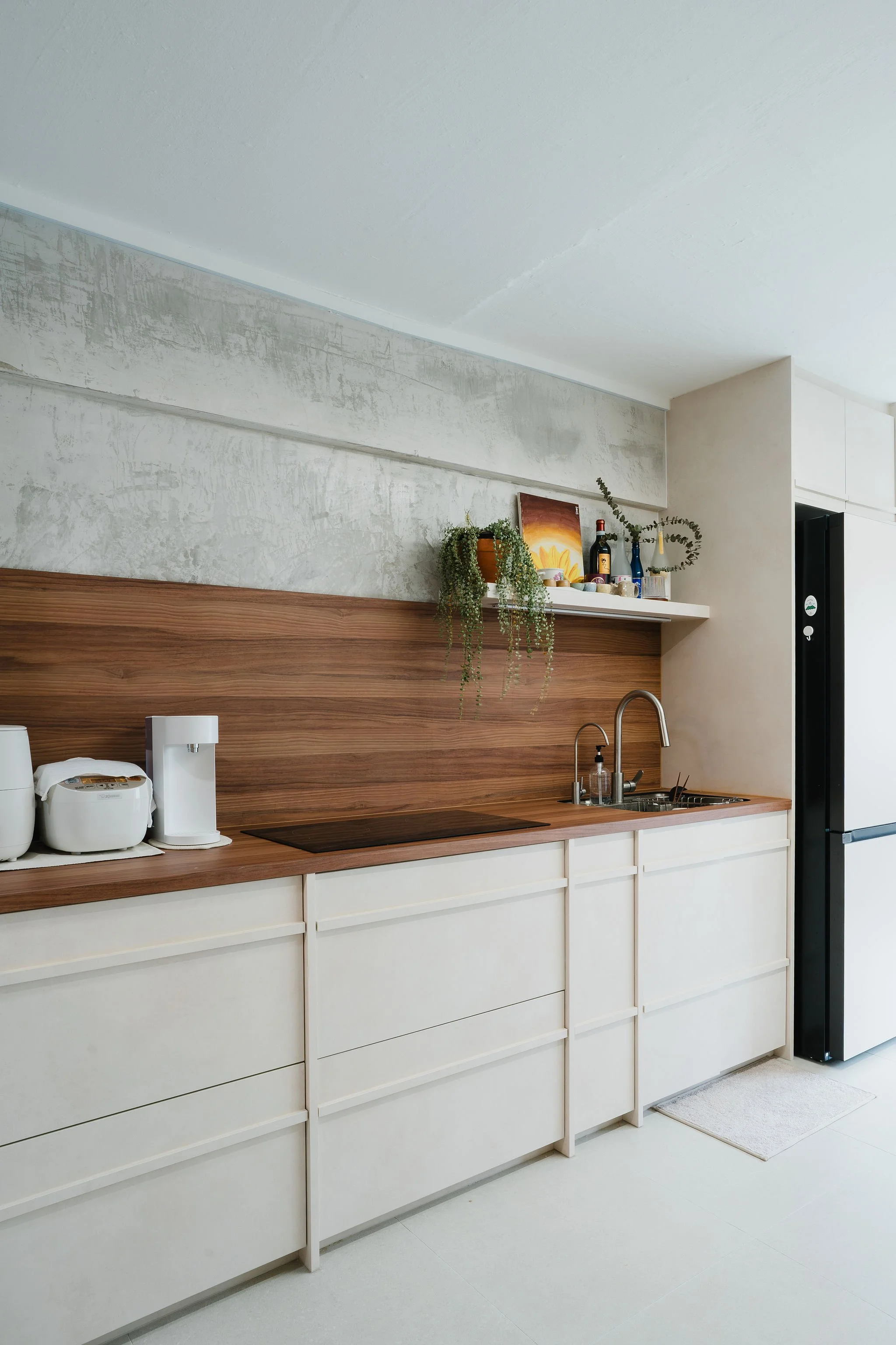 This HDB home was transformed with Wabi-Sabi elements for a timeless, modern charm.