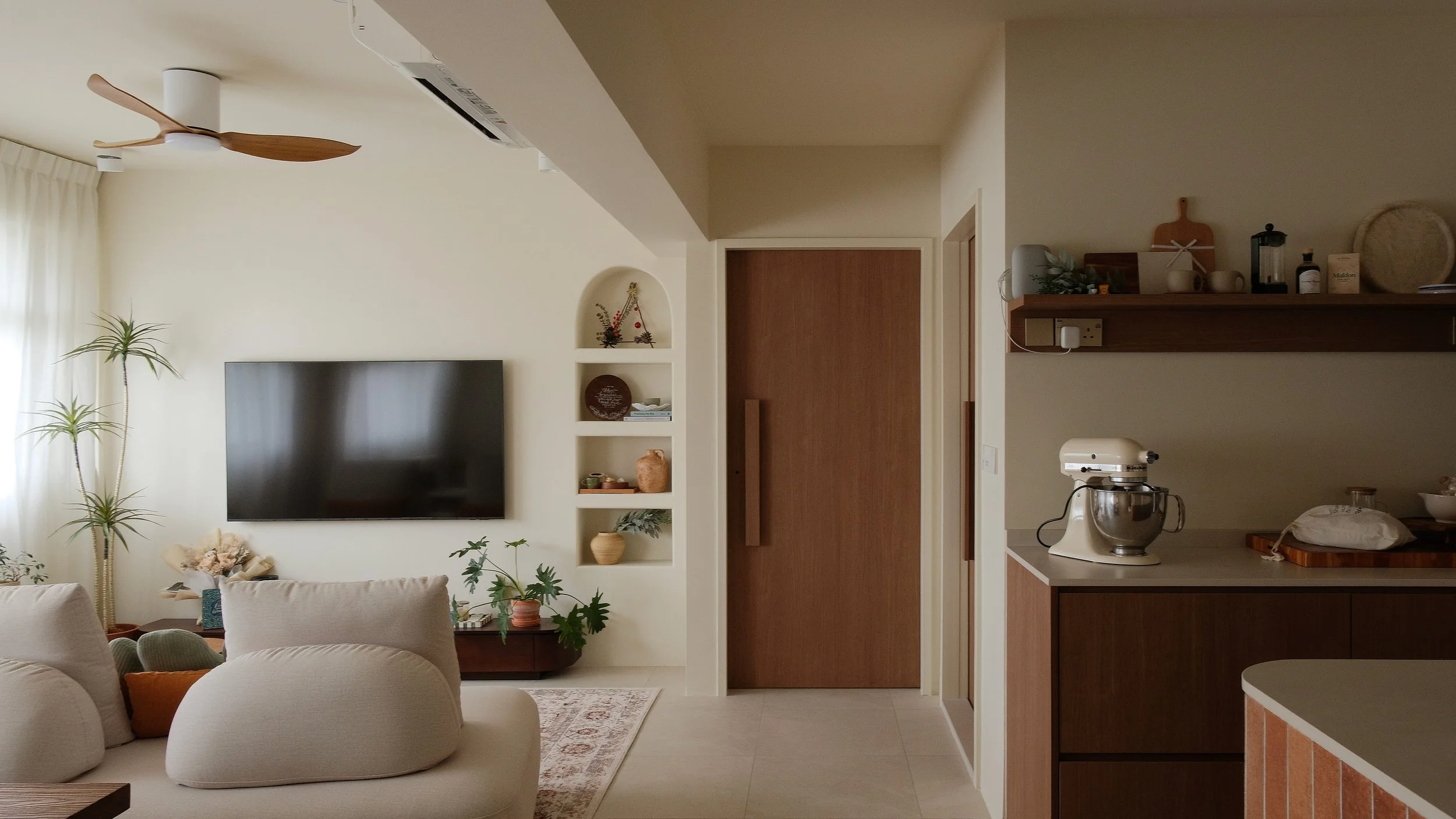 Escape to a Balinese retreat in Toa Payoh, home to a couple who wanted the calm and warmth of Bali in their everyday life. This 4-room BTO features an open layout that fills every corner with natural light, while a palette of beige, brown, and terracotta sets the mood for slow mornings and relaxed evenings.