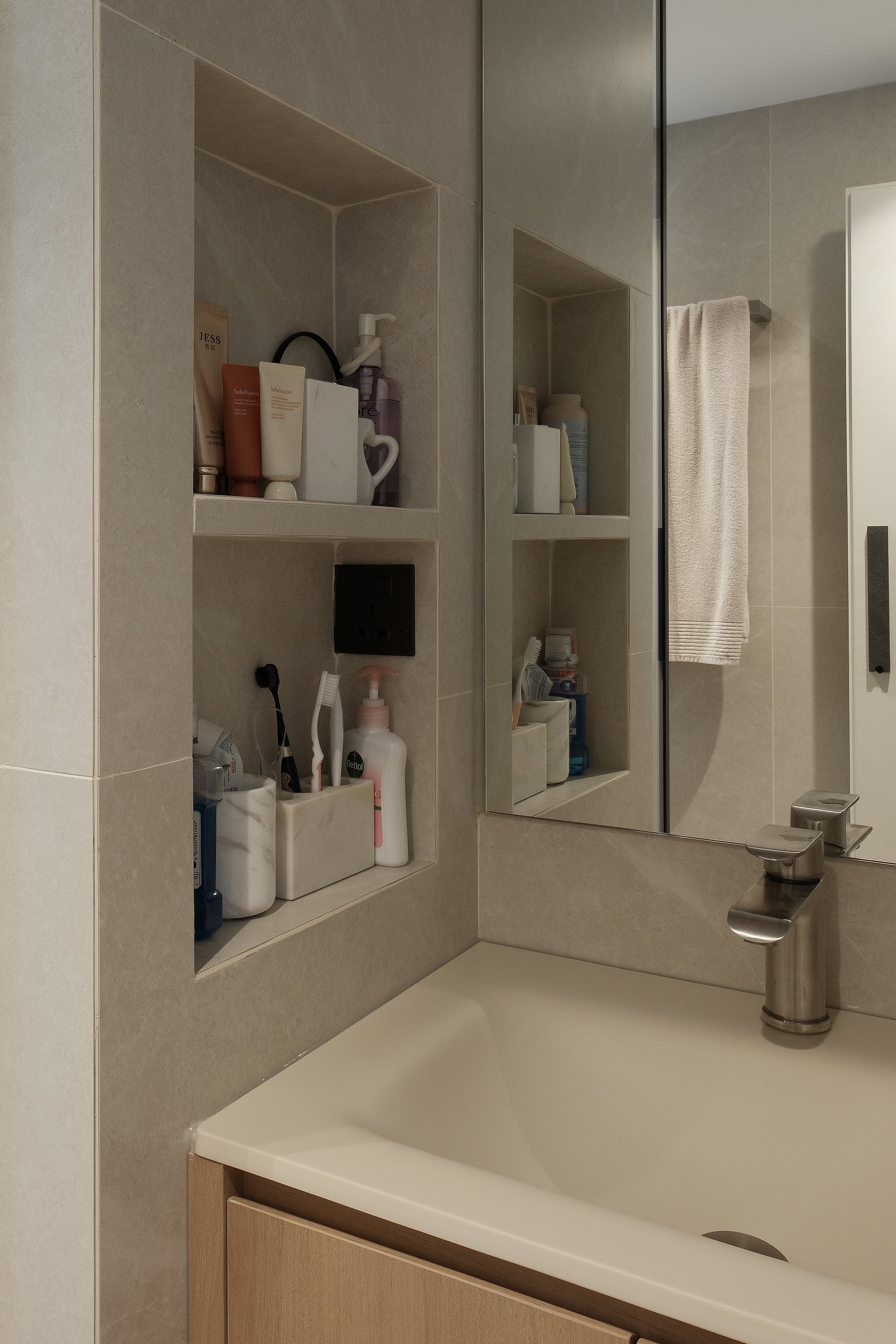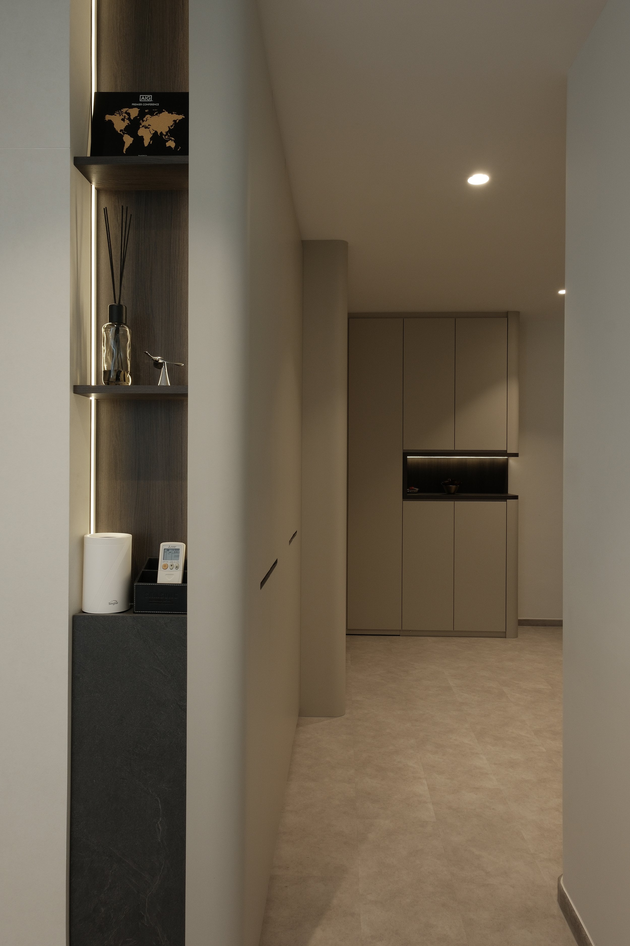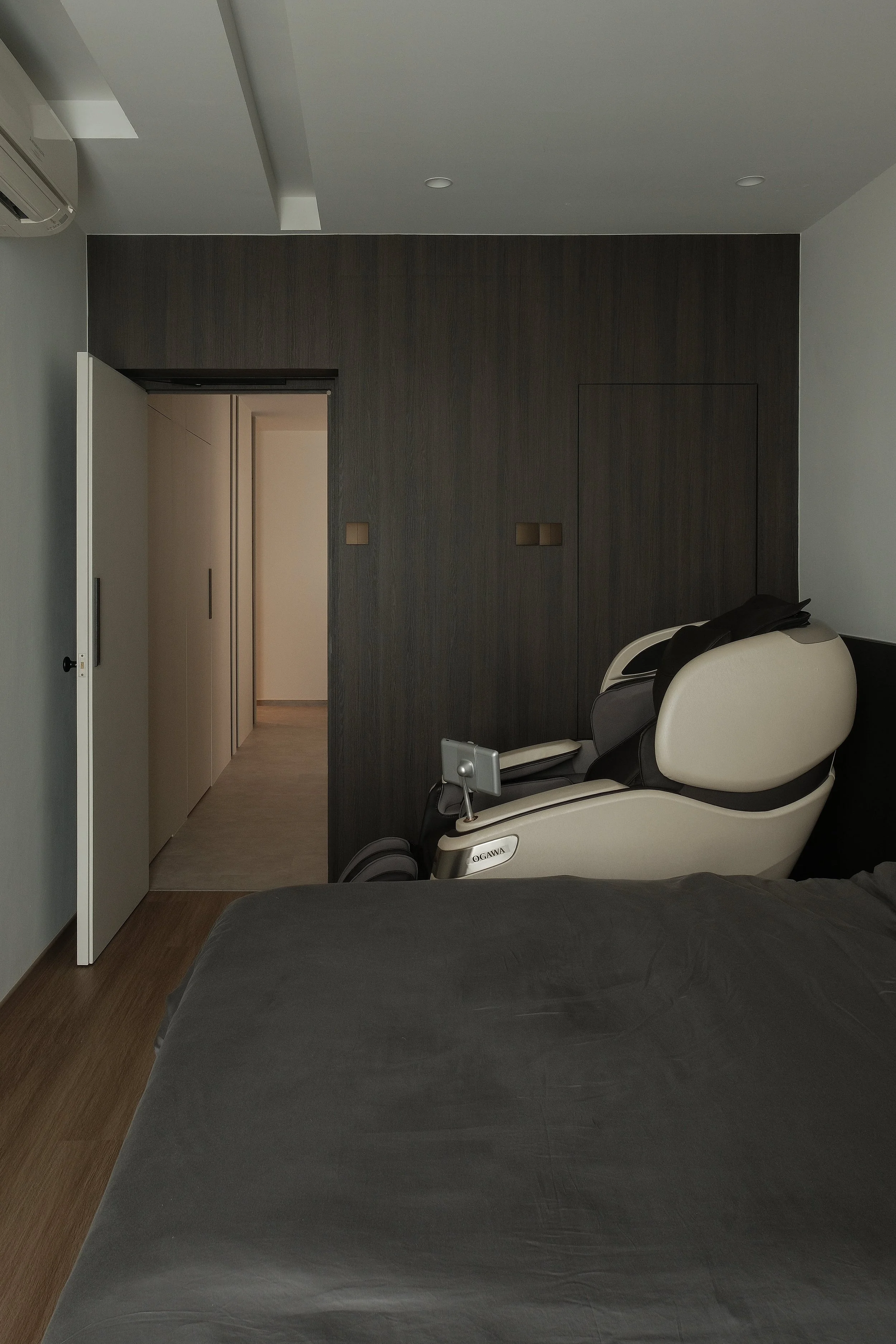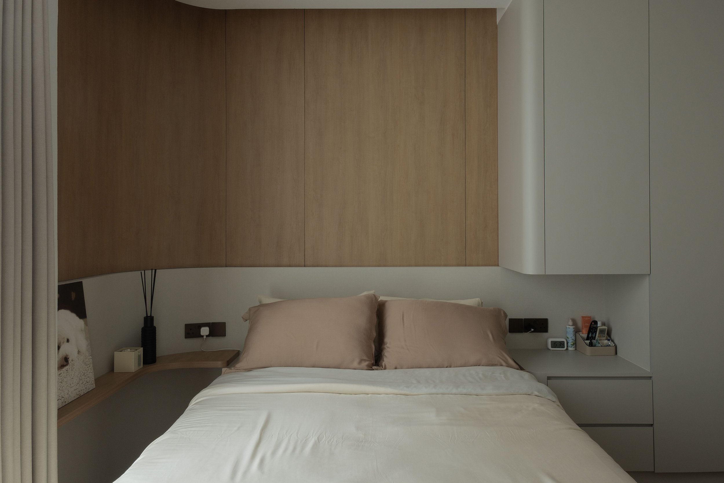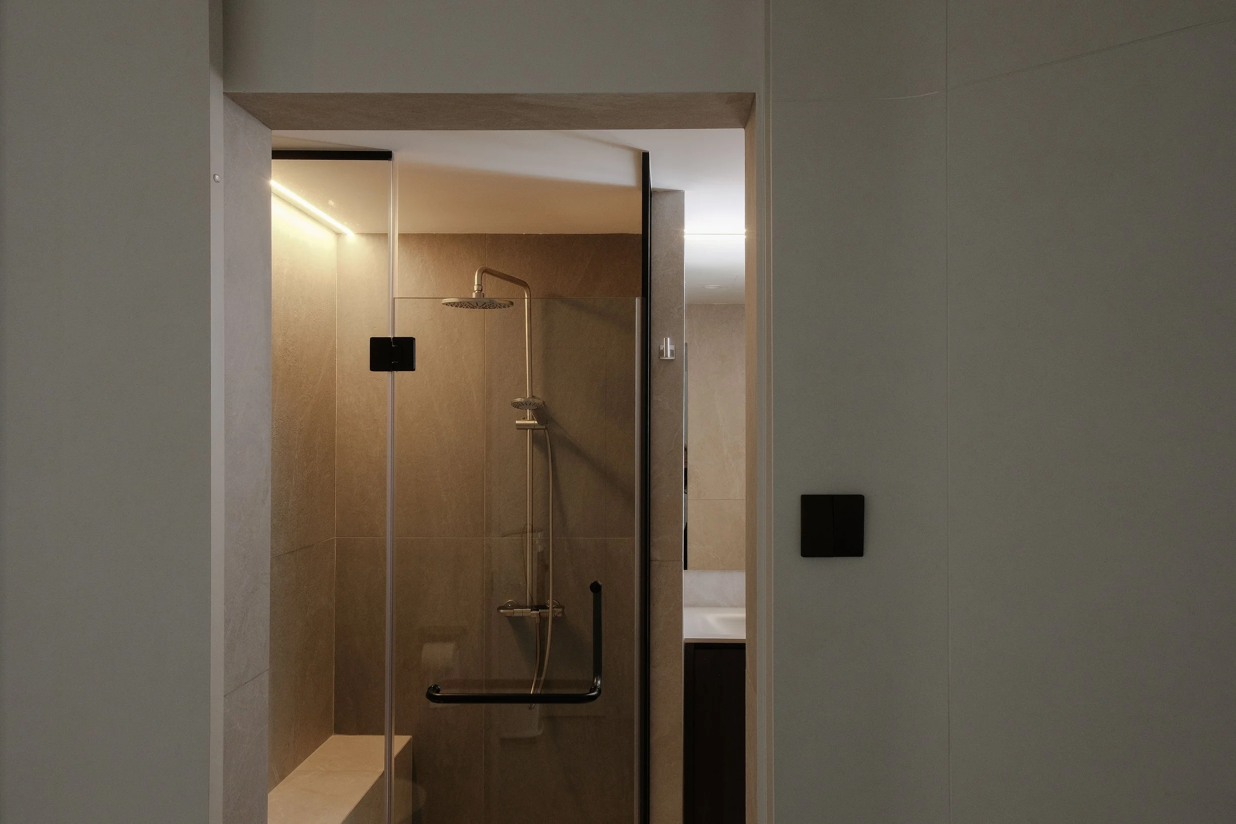 The bedrooms are personalised for both Mr and Mrs. The Mrs bedroom features a wardrobe with infrared motion sensor lighting, a display cabinet for her favourite bags and adjustable cove lighting at the bed. The Mr bedroom also incorporates cove lighting, along with a carefully concealed door leading to the toilet.